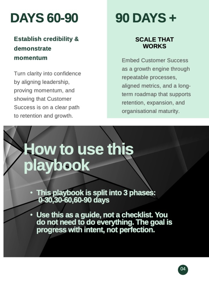 If you are starting or interviewing for your first Customer Success Leadership role and need structure and support then this playbook is for you. By following this playbook, you’ll move from uncertainty to clarity, avoid early missteps, and build credibility with your team and leadership.